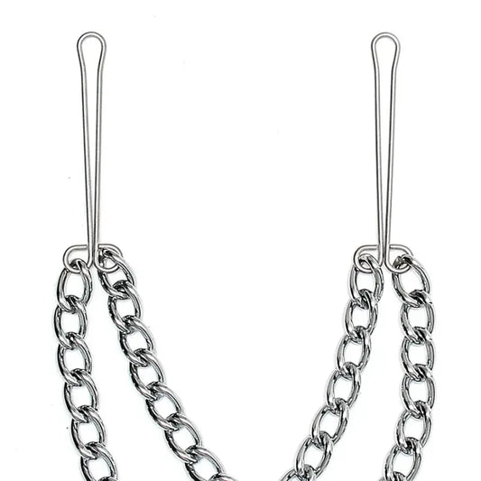 Silver Nipple Clamps With Double Chain