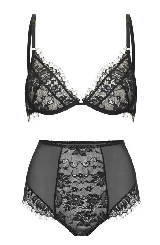 Discover the exquisite high waist brief designed to perfectly complement the Forever Young Collection. This brief features a beautiful lace panel at the center, enhanced with delicate eyelash lace trim that elevates its appeal. The intricate detailing on the back adds a unique touch of femininity.