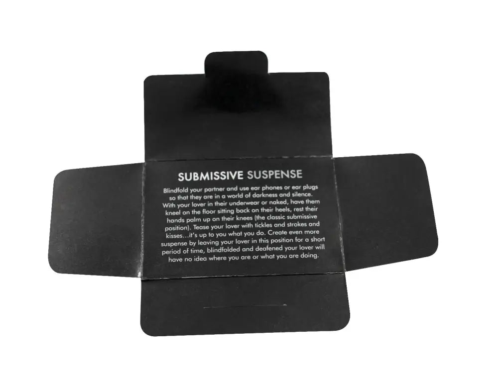 Who will be the dominant player today and who will play a more submissive role ? Only the envelope can decide ... Fifty Days of Play has 50 secret envelopes that progress through 5 levels of play ranging from intimate moments together through stimulating scenarios to erotic surprises . Not only can you use the envelopes as part of this game you can sneak envelopes into your partner's purse or wallet as a naughty surprise that is waiting for them to get home . On a weekend away why don't you both randomly choose a few envelopes and use them to fill your time away with erotic ideas ? Fifty Days of Play is a versatile game for you both to share whenever and however you like .1 Die50 Envelopes ranging through 5 shades of naughtiness .