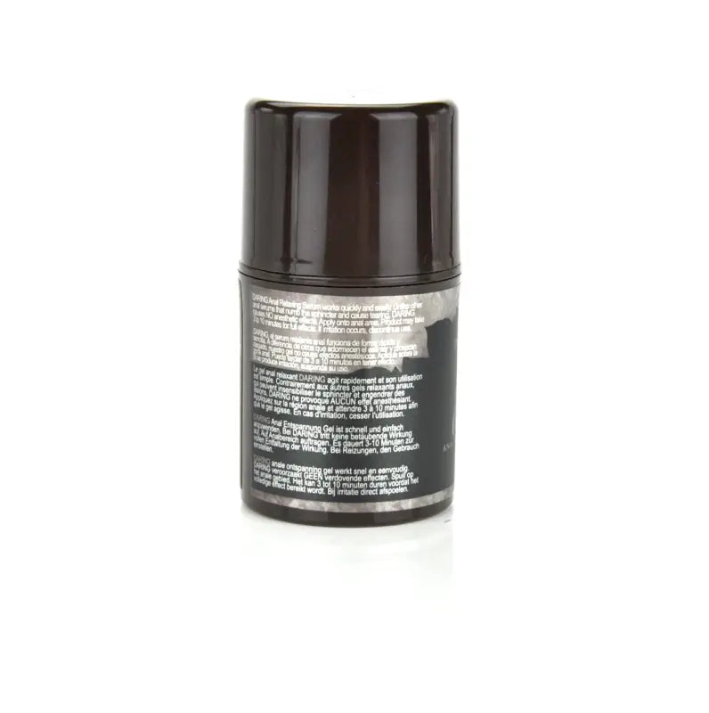 Unlike other anal sprays or gels that can numb the sphincter and lead to tearing our herbal gel causes no anaesthetic effects . The anal sphincter becomes relaxed and therefore penetration becomes more comfortable . Intimate Earth's Darings unique formula contains a certified organic extract blend with the natural potency of clove goji berry and aloe . Intimate Earth's natural anal relaxing gel does not contain the synthetic compound benzocaine . Daring works quickly and is easy to apply . 30ml e/1oz . Gel