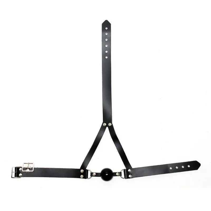 Genuine leather Gag with rubber ball and head strap, adjustable with buckle.