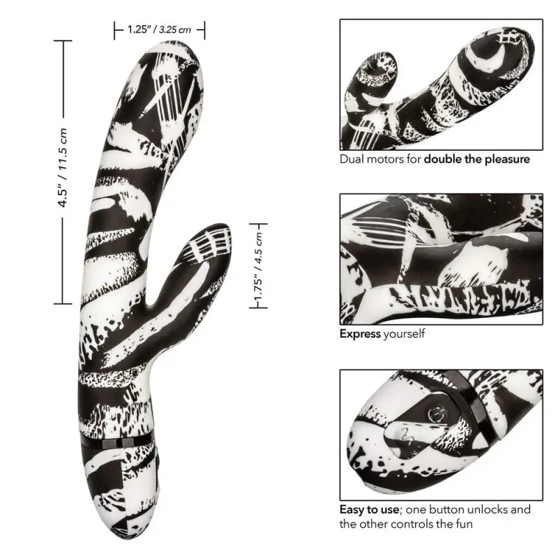 The easy touch buttons allow you to independently control the vibration motors with ease - - Indulge in personalized pleasure while the curved wand shimmies to the rhythm of 10 vivacious vibrations, passionate pulsation and erotic escalation