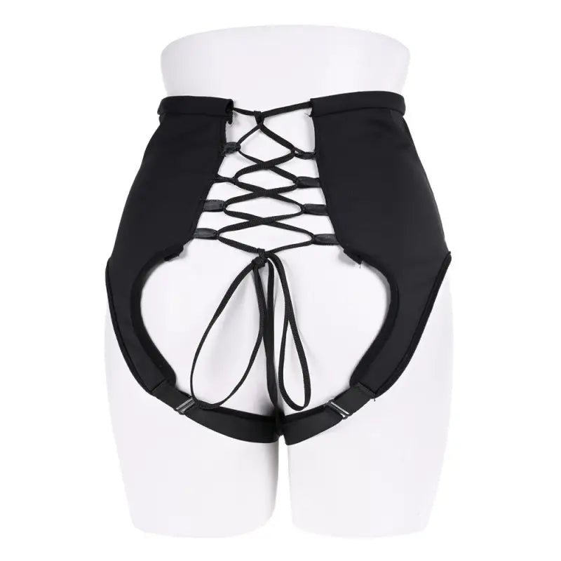 Explore powerful intimacy through the perfect blend of comfort and control with the High Waisted Corset Strap-On Harness