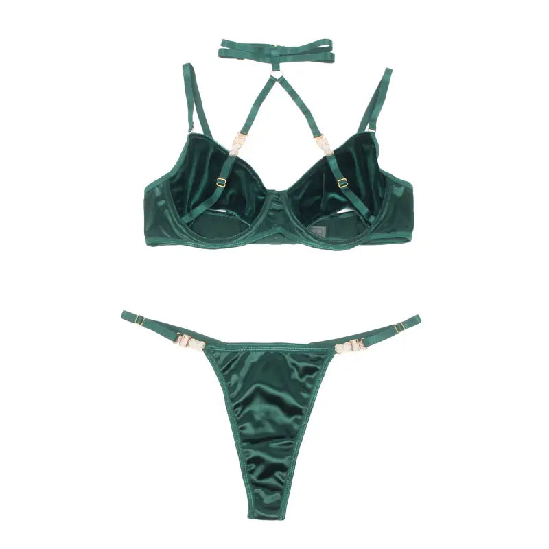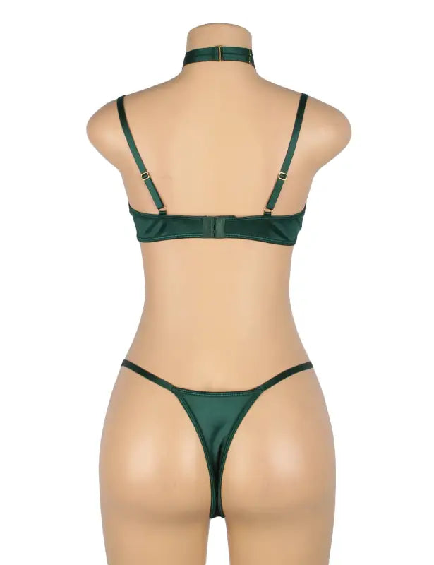 Experience the allure of the YesX YX873Q Hollow Cut Halter Bra Set, a stunning lingerie piece designed to enhance your curves. This halter bra features a daring hollow-cut design with supportive underwire, ensuring you feel both confident and stylish. The ultra-soft, velvety fabric provides an irresistible sensation against the skin, while elegant gold hardware adds a touch of sophistication. Complemented by a high-cut thong that enhances your silhouette, this set is ideal for making a bold statement. Embrace your femininity and indulge in the luxurious comfort of this exquisite lingerie.