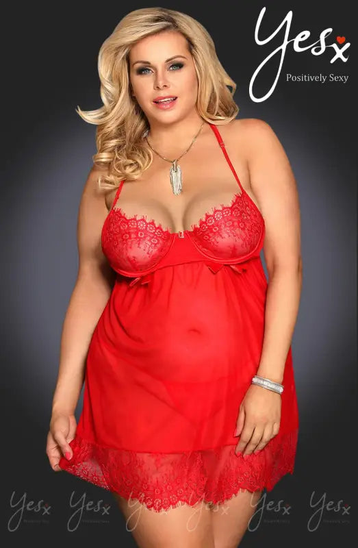 Indulge in allure with the YesX YX952Q Red Babydoll Set, designed with exquisite eyelet lace and charming ribbon bows. This enchanting babydoll includes a matching thong and boasts supportive underwired cups, adjustable straps, and a hook and eye back closure for a perfect fit. Each set is elegantly packaged in a luxurious YesX satin bag.