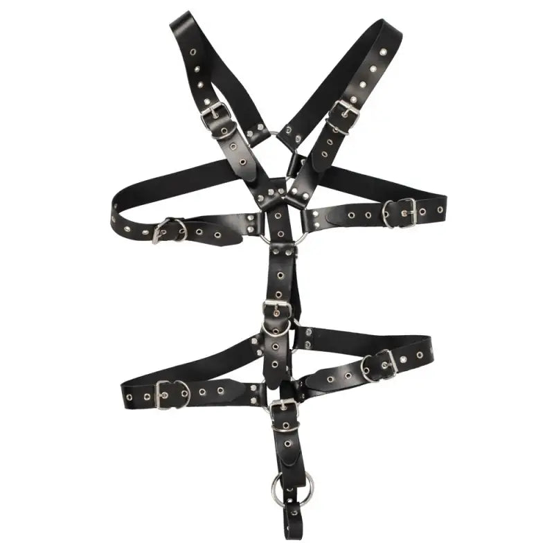 Zado Mens Leather Adjustable Harness With Cock Ring